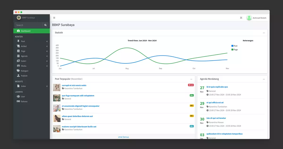 Developing a robust and flexible content management system (CMS) for BBKP Surabaya. This project includes a user-friendly website and an intuitive admin dashboard, offering seamless content management with comprehensive features.